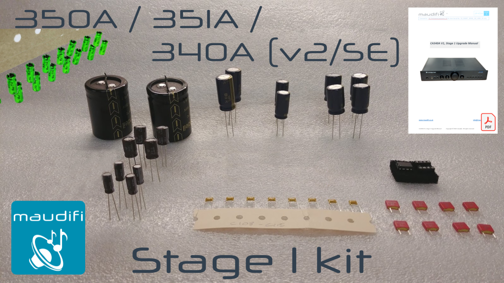 Stage 1, Essential Refinement upgrade kit for all the Cambridge Audio Azur 3xx evolution of integrated amplifiers, except the very first edition. i.e. This kit is suitable for the 340A v2, 340A SE, 350A or the 351A. You or your appointed technician must carry out the upgrade. maudifi offers an upgrade service for UK customers, available here.